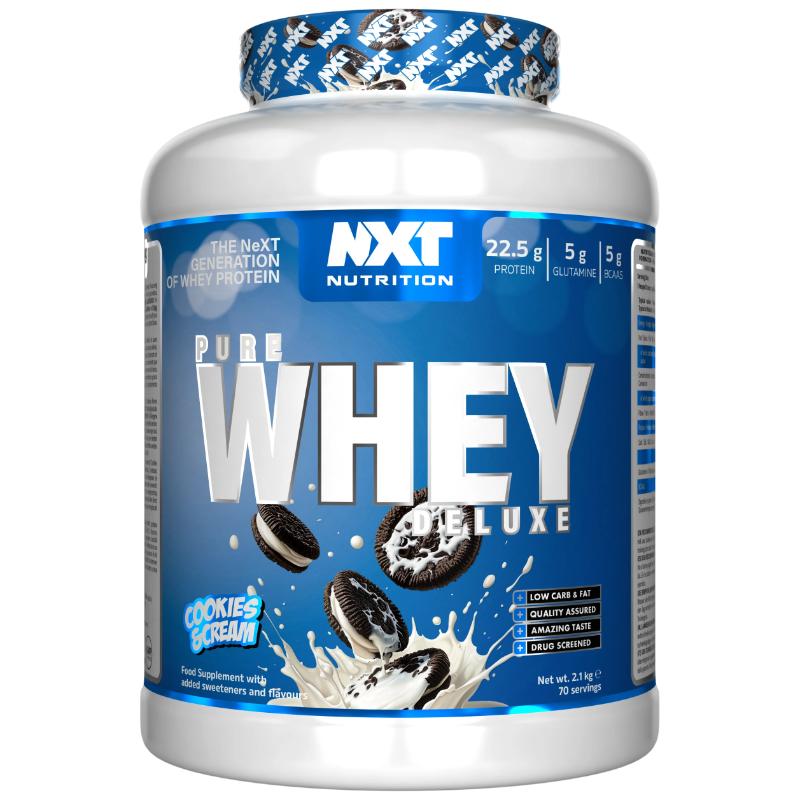 Pure Whey De Luxe van NXT Nutrition bevat de unieke mix van wei-eiwitisolaat, wei-eiwitconcentraat en gehydrolyseerd wei-eiwit en is gemaakt om je hoogwaardige eiwitten te leveren voor snelle opname. Dit zorgt ervoor dat je spieren de voedingsstoffen krijgen die ze nodig hebben om optimaal te herstellen en het algemene herstel te ondersteunen, waardoor je je fitnessdoelen kunt bereiken.